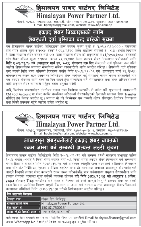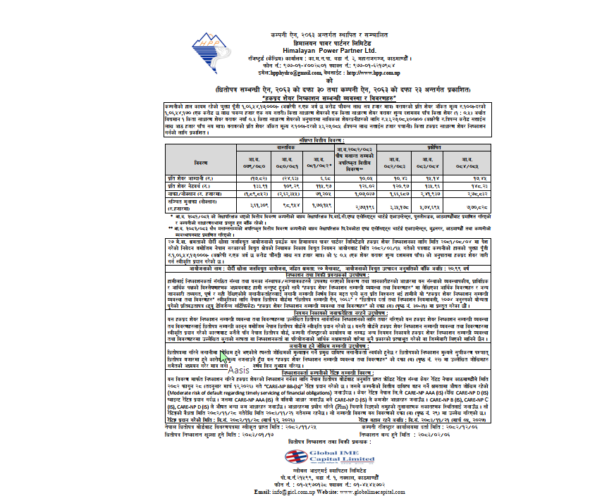 The company has also invested in the upcoming Middle Kaligandaki Hydro-electric Project (66.3 MW), Myagdi, which is being developed by Hydro Support Pvt. Ltd., a sister company of IME Group of industries.